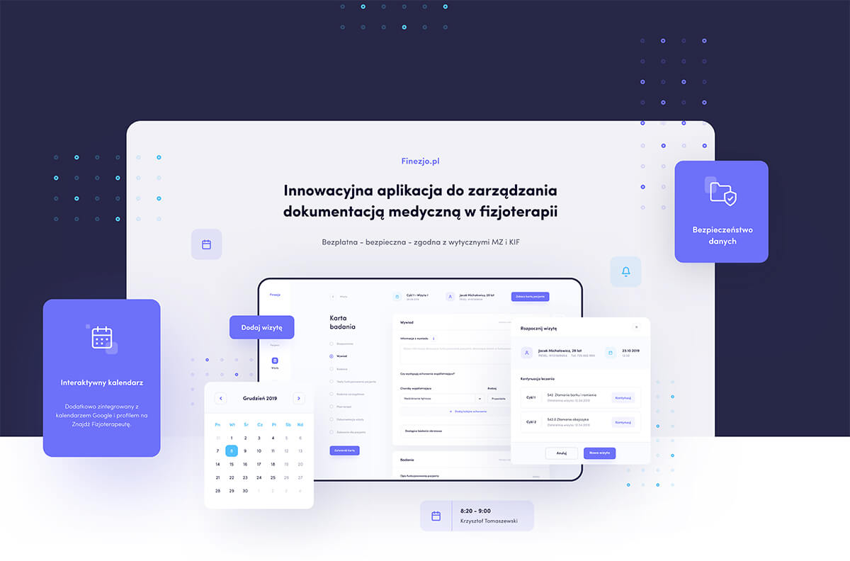 Czy istnieje aplikacja stworzona z myślą o potrzebach fizjoterapeutów i ich pracy? Dziś mogę śmiało powiedzieć: istnieje i nazywa się Finezjo. Jej tworzeniu przyświecała idea programu, który będzie uwzględniał specyfikę różnorodności naszej pracy i dostosowywał się do potrzeb użytkowników, a nie odwrotnie. Aplikacja taka mogła powstać tylko przy współpracy z ponad setką praktykujących fizjoterapeutów, którzy dzielili się z zespołem projektantów i programistów swoimi uwagami, opiniami i radami. Na każdym etapie braliśmy pod uwagę zdanie osób testujących program. W ciągu pół roku prac wielokrotnie konsultowaliśmy jego makiety z praktykującymi fizjoterapeutami. Wszystko z myślą o wygodzie przyszłych użytkowników.