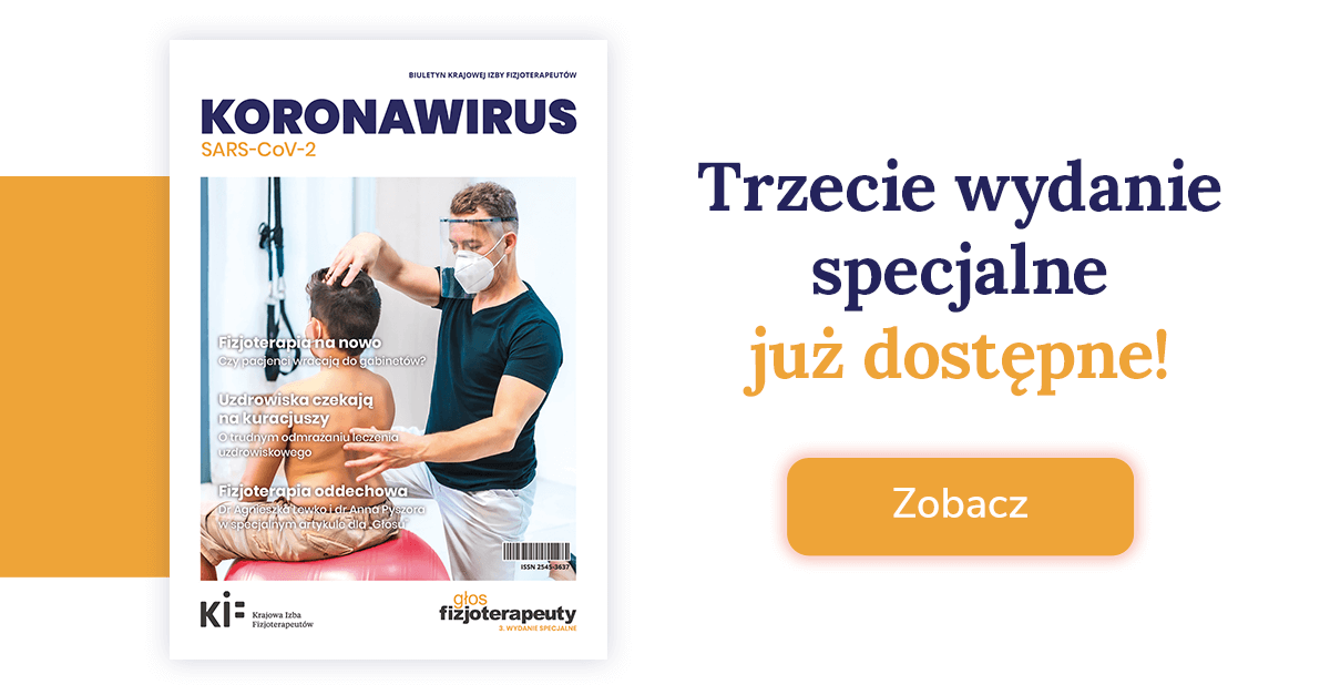 oddajemy w Wasze ręce trzecie wydanie specjalne “Głosu Fizjoterapeuty”. Wciąż zajmujemy się w nim tematyką „covidową”, ale już w nieco innej odsłonie. Po trzech miesiącach jesteśmy już gotowi na pewne podsumowania, ale też myślimy o powrocie do tzw. „normalności”. To co wyróżnia nowy „Głos…” to przede wszystkim liczne historie „z życia wzięte”, które pokazują różne oblicza fizjoterapii – także tej widzianej oczami osób spoza naszego zawodu – pacjentów lub lekarzy.