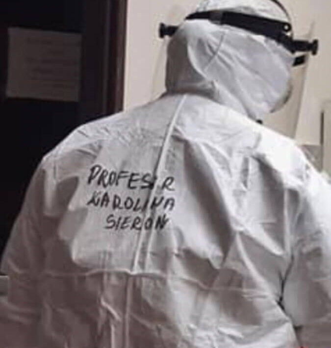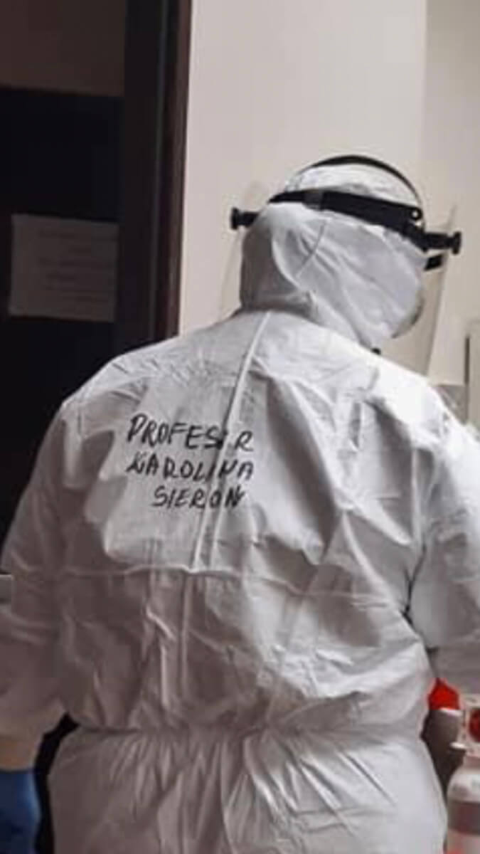 „Pisząc kilka dni temu ostatni post i dziękując, jako były już pacjent, za profesjonalną opiekę medyczną personelowi medycznemu szpitala MSWiA w Katowicach (…) nie przypuszczałem, że życie dopisze jakże mocny i czytelny dla każdego z nas przykład” – pisał w połowie listopada w mediach społecznościowych poseł Jerzy Polaczek. „Szefowa – koordynator oddziału COVID-19, Pani profesor dr n. med. Karolina Sieroń, jeden z wybitnych profesorów nauk medycznych, została zakażona COVID-19 i sama stała się pacjentką na tym oddziale. (…) Zanim Pani profesor zachorowała, w ciągu ostatniego miesiąca 21 pełnych dni spędziła na dyżurach, ratując życie i zdrowie chorych. Bohaterka czasu próby!”. W kolejnym wpisie przekazał apel o oddawanie osocza, którego brakowało wtedy w Katowicach, a należało go podać prof. Sieroń. Sprawa została nagłośniona na całą Polskę i udało się zebrać potrzebne osocze.