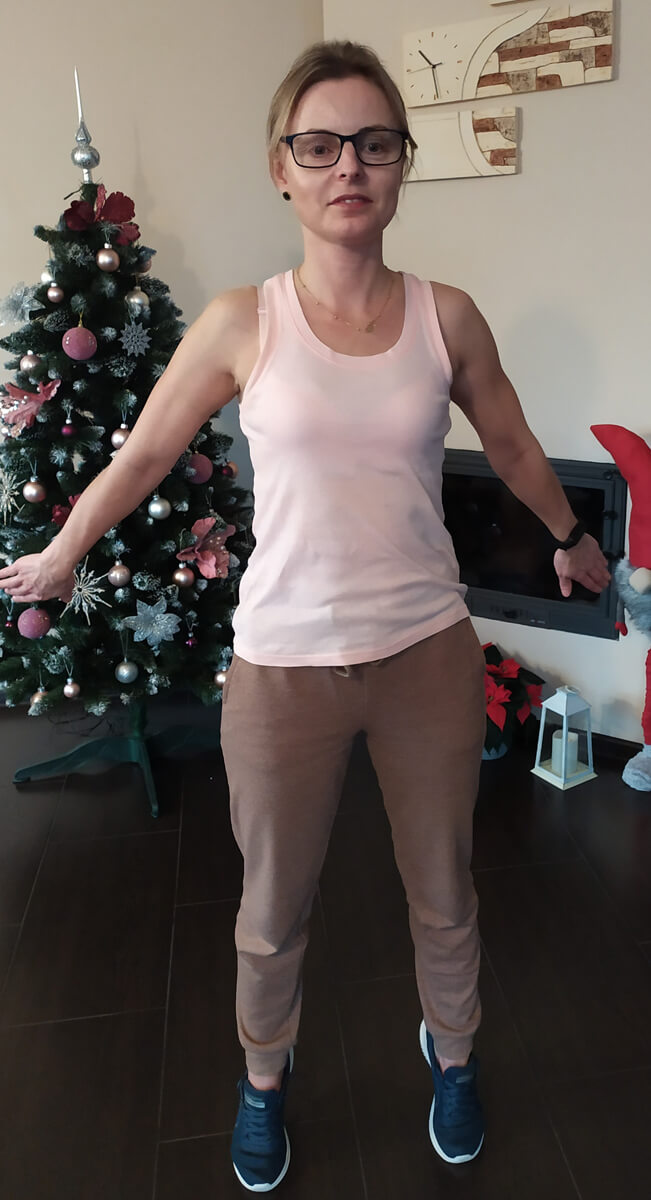 Mam ułożony plan treningowy obejmujący m.in. chodzenie po schodach, spacery, przysiady.