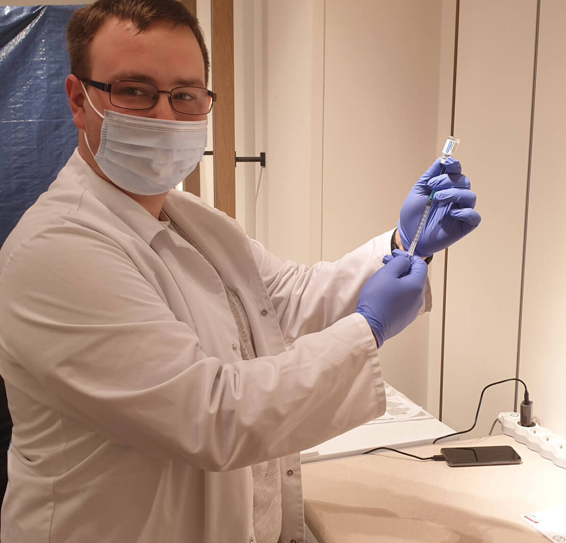 Szczepię w Szczecinie i okolicach. Aktualnie pracuję w dwóch prywatnych punktach, które świadczą usługi stacjonarne oraz dojazdowe do pacjentów. W jednym jestem sam z osobą rejestrującą – wówczas kwalifikuję oraz wykonuje szczepienia. W drugim punkcie jest nas więcej: rejestratorka, dwie osoby kwalifikujące i dwie szczepiące. Moja rola w tym punkcie zależy od ustaleń ze współpracownikami oraz potrzeb danego dnia. Czasem kwalifikuję przez całą zmianę, a czasem szczepię. Parę razy zastępowałem również koleżanki rejestrujące pacjentów, ponieważ – jak się okazało – miałem największe doświadczenie w pracy z systemem. Jeżdżę również do domów osób, które nie są w stanie samodzielnie do nas dotrzeć. Wówczas wykonuję całą pracę: kwalifikacja, przygotowanie szczepionki, szczepienie oraz wprowadzenie do systemu niezbędnych informacji.
