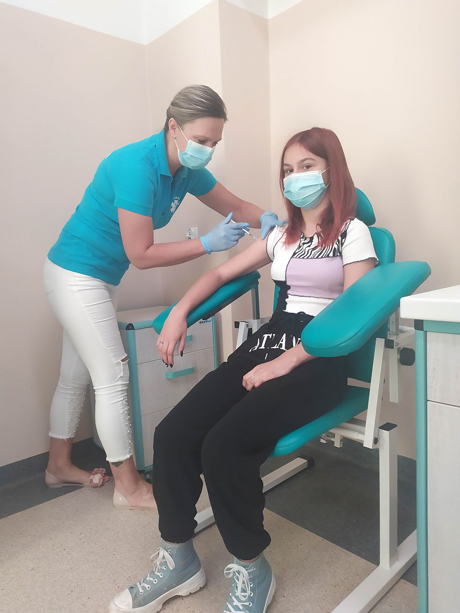 Podsumowując, jestem bardzo zadowolona z tego, że mogę szczepić. Staram się rozluźnić i uspokoić pacjentów, aby wiedzieli, że żadna krzywda im się nie dzieje. Wielką satysfakcją jest dla mnie uśmiech pacjenta wychodzącego z punktu szczepień.