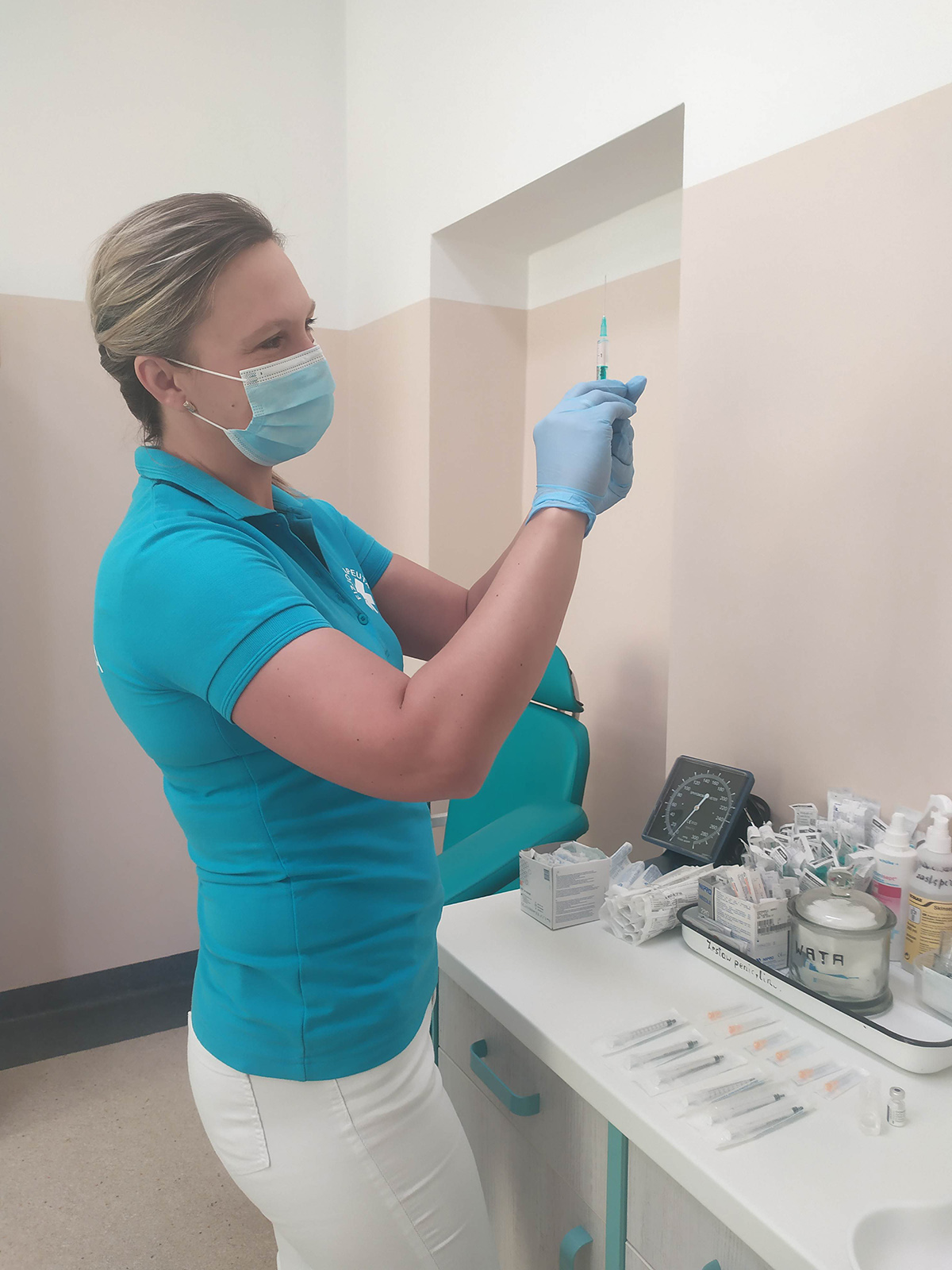 Placówka, w której szczepię, to gminna przychodnia w Osiu (woj. kujawsko-pomorskie). Tam też pracuję na co dzień jako fizjoterapeutka. Szczepienia wykonuję od maja br., ale nie kwalifikuję. Moje obowiązki to: przygotowanie szczepionek, wpisanie pacjenta do systemu po szczepieniu i oczywiście samo szczepienie – i ta ostatnia czynność sprawia mi największą satysfakcję.