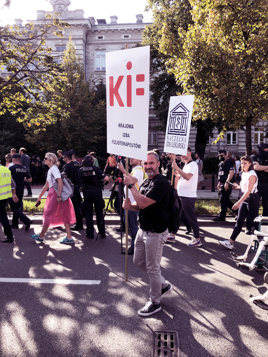 Białe Miasteczko działa nadal. Podejmujemy w nim różnego rodzaju aktywności, happeningi, spotkania z pacjentami i wszystkimi zainteresowanymi tematyką zdrowotną. Jednak Białe Miasteczko to tylko jeden z wymiarów protestu. Nasz protest rozgrywa się i będzie się rozgrywać także gdzie indziej. Organizacje lekarzy, lekarzy dentystów, pielęgniarek i położnych już zaapelowały o ograniczenie czasu pracy do wymiaru jednego etatu. Podjęli też taką inicjatywę diagności laboratoryjni, prośbę do swoich członków wystosowała też Krajowa Rada Fizjoterapeutów. Fizjoterapeuci powinni zacząć pracować w kodeksowym wymiarze czasu pracy. Nie muszę pani tłumaczyć, że system ochrony zdrowia działa w warunkach kadrowego niedoboru i ten niedobór kompensowany jest faktyczną wieloetatowością pracowników medycznych. Z danych udostępnianych przez NFZ wynika, że w świadczeniach gwarantowanych w 2019 r. pracowało ok. 36 tys. fizjoterapeutów. Dziś w rozmowach z AOTMiT słyszymy o ponad 20 tys. Można się zastanawiać nad tak dużą rozbieżnością. Jeżeli dane AOTMiT są poprawne, to wskazują na duży odpływ fizjoterapeutów z systemu. Ci, którzy zostają w publicznej ochronie zdrowia, muszą zatem wypełniać luki kadrowe i pracować ponad standardowy „etat”. A przecież dzieje się to kosztem ich prywatnego czasu na odpoczynek i zadbania również o własne zdrowie.