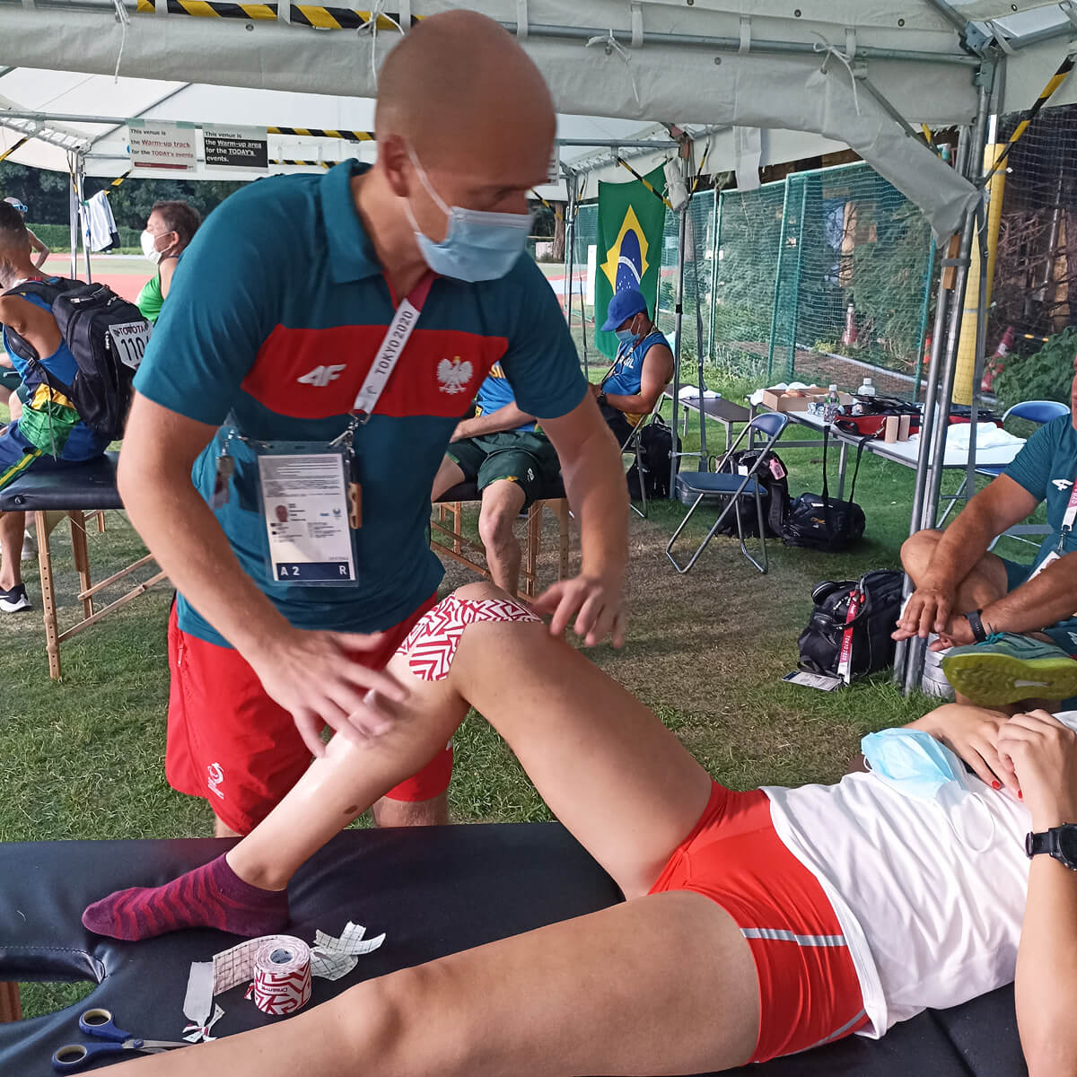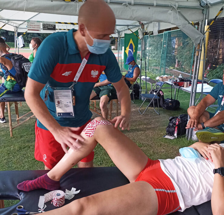 W sumie do Japonii na 70 paraolimpijczyków pojechało 10 fizjoterapeutów, w tym pięcioro z nas było przyporządkowanych do naszych zawodników lekkoatletycznych. Asystowaliśmy na treningach, żeby ewentualnie szybko zareagować, ale przede wszystkim obserwować jakość ruchu, aspekty koordynacyjne, oceniać, czy nie ma jakiś nieprawidłowości. Oczywiście byliśmy obecni także na startach. Na szczęście udało się uniknąć kontuzji. Zajmowaliśmy się głównie naszymi zawodnikami, ale każdy miał też kilka dyżurów, aby pomóc zawodnikom z innych dyscyplin, które nie miały przypisanych fizjoterapeutów.